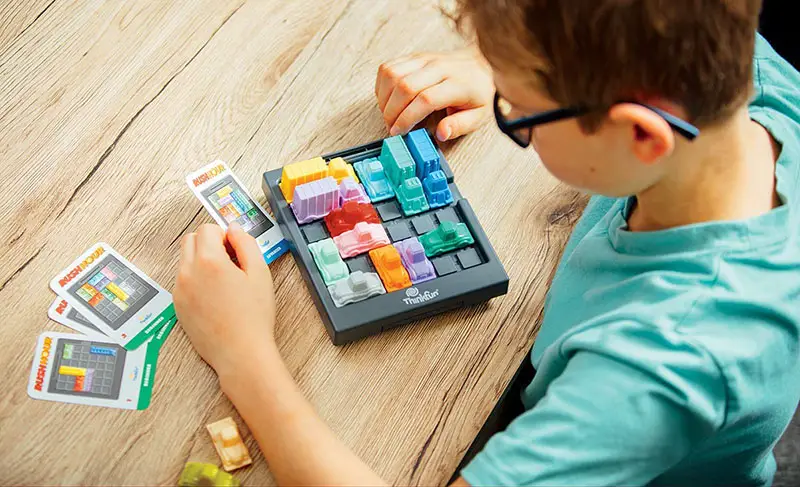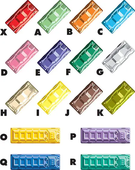 Select a challenge card and place the cars and trucks on the traffic grid as indicated by the illustration.