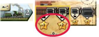 If you reach spaces 1 through 4 or space 8 of the Kiev railroad with your black track and a locomotive, you score the points depicted in the stars during future scoring phases. These points are cumulative.