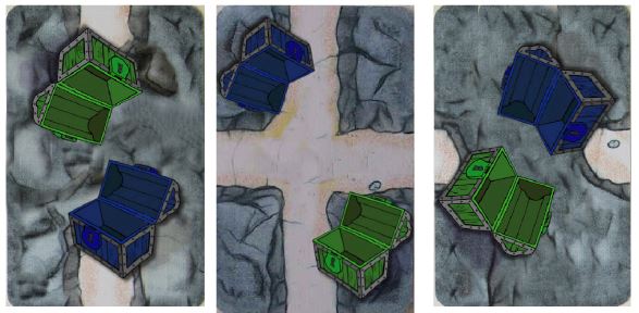 Chests are played as any tunnel card. As soon as any chest is available in the tunnels, ANY player playing a jewel card MUST bring 1VP token from that card to the chest of his/her choice. Tokens will accumulate there. If the way to all the chests is blocked, then nothing is done.