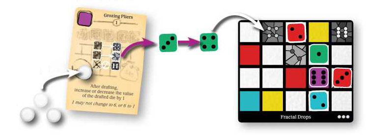 - Select 1 die from the Draft Pool and place it in an open space on their Window