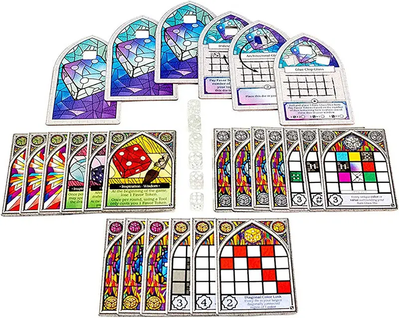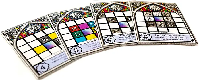 Rare Glass Boards allow players to acquire and place Rare Glass Dice in their windows. These dice pair with new Private Objectives offering new ways to score.