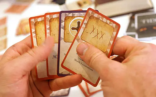 Each player will carefully view his or her new set of Tryal cards.