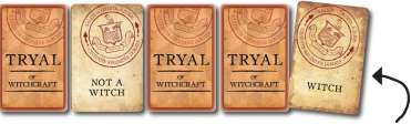 When Conspiracy is drawn, all players will take a face-down Tryal card from the player to their left. If you receive a "Witch" card, you join the team of Witches!