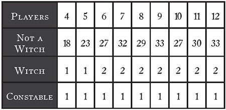 You may also use 2 Witch cards in 4-5 player games, and 3 Witch cards in 6-12 player games.