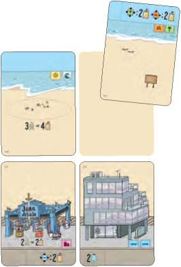 To begin your turn, you will either select one feature card from the display or use a sand dollar action to acquire cards in a different way. However you acquired the cards, you will place them in your city.