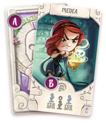 A Hero Power cannot be used in the Golden Fleece variant. Hero Powers are only supported in a 2-player game. Hero Powers are easily identified by the purple back A and Helmet icon B on in the border.