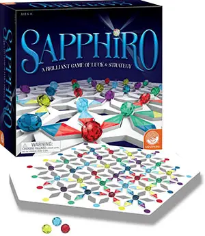If you place the last (sixth) tile to surround a gem, you've created a Sapphiro and can capture the gem! Take that gem and place it in front of you. Draw a new tile to end your turn. Play passes to the left.