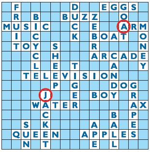 Note: Because some words share letters, the tile that completes a word may not be covering the last letter of the word.