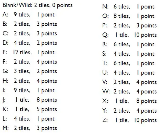 Unplayed Letters: When the game ends, each player's score is reduced by the sum of his or her unplayed letters. In addition, if a player used all his or her letters, the sum of the other players' unplayed letters is added to that player's score.