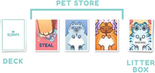Flip over the first 3 cards of the deck and lay them face up in the middle of the table. This will be your Pet Store.