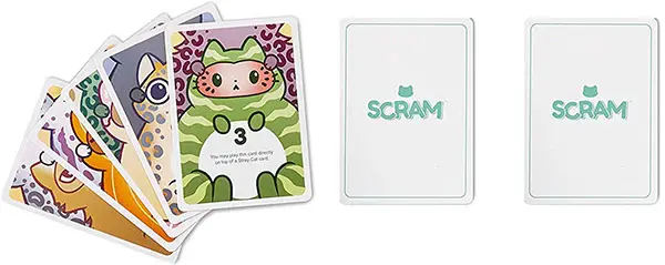 A Scram card sends the Stray Cat card to the Litter Box. If a Scram card is played, the player who played the Stray Cat card does not get to take another turn.