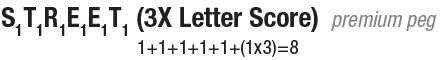 For instance a "3X Letter Score" at the end of the word "STREET" would add 3x1 (the letter value for "T") to the total score - in this case a total of 8 as all of the letters in this example have a point value of one.