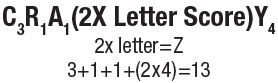 As an example the word CRAZY below, using a 2X premium letter peg wild card for "Z", would score 13 points because you double the letter point value for "Y".