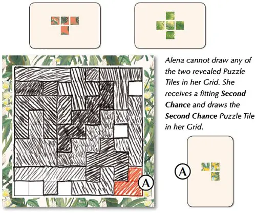 If you cannot draw either of the revealed Puzzle Tiles in your Grid, wait until the other players have drawn their Puzzle Tile. Afterwards, reveal an extra Puzzle Tile Card just for yourself - this is your Second Chance.