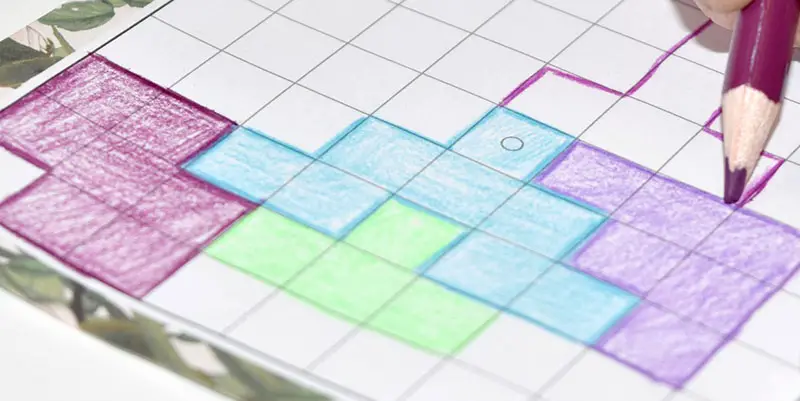 Tip: Whenever you are drawing Puzzle Tiles in Second Chance, first draw the outlines of the shape and then mark off all its squares. That way you can avoid mistakes or confusion later in the game.