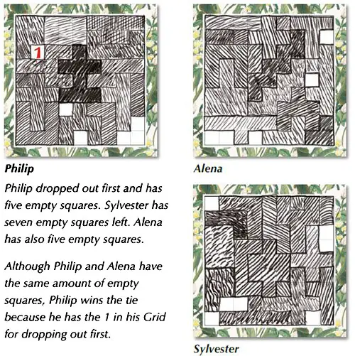 If one or more players completely fill their Grid, the game ends prematurely. All players who completely filled their Grid win the game.