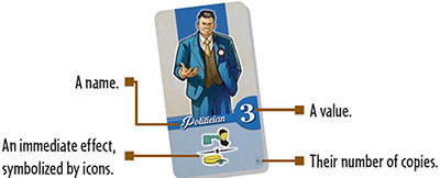 At the end of the active player's turn, if any player has a pair of identical Character cards in their display, flip those two cards facedown. The two cards now have a value of zero.