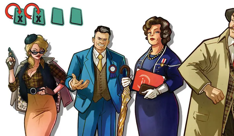 Note: At this time, players may place the two Help tokens on the Help sheet to track which two characters were revealed.