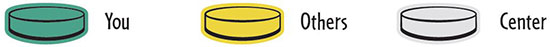 - 7 or 8 players: Each player secretly looks at their own Identity token and the Identity token of the player on their right. Then the center Identity token is revealed to all players, before being flipped back facedown.