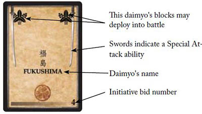 Exception: Cards of all daimyo designations may be matched to the sole Ishida block and the sole Ii block. As a reminder, these blocks both feature a card-shaped rectangle in the corner.