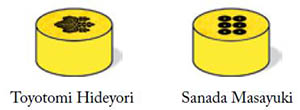 Turn Marker: A flat square with the Tokugawa mon on one side and the Ishida mon on the other is used to mark the turn, the move, and the player who moves first this week.