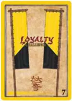Loyalty Challenge cards are marked with a nobori (banner). They are played out of turn, immediately after a deployment by the opposing player, to challenge the loyalty of the block thus deployed.