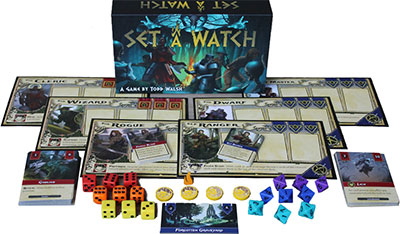Set a Watch is a cooperative game for one to four players. You must secure nine locations to prevent the acolytes from breaking the seals holding back the evil Unhallowed.