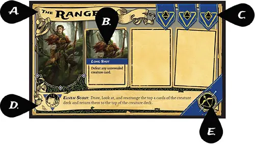 B Ability Slots: Adventurers should place their three ability cards in the slots on their board.