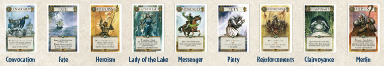 At the beginning of each turn, you are faced with selecting one of three unappealing choices, all designed to help the forces of Evil in their campaign against you. Deciding which is the lesser of these evils will depend on the current game circumstances, but you must choose from one of the following: drawing a Black card; adding a Siege Engine around Camelot; or losing a Life point.