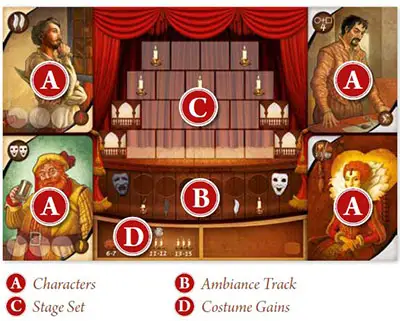 Once all of the players have placed their cylinders and recruited, each player in the turn's order, checks the ambiance of their troupe.