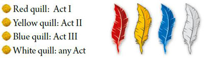 In addition, all actors have a special power which is only used during dress rehearsals (see Phase 4). The color of the quill indicates on which Act the player can move: