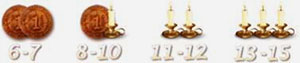 Depending on the value of their costume mistress (6 or 8), the player takes costume elements from among those available on that day and places them on their actors and extras. The values of the elements are as follows: