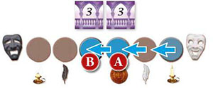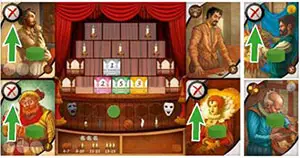 Note: The powers of Viola and Hamlet are special. They do not allow players to move forward, but grant a bonus during the rehearsal phase to the player who acquired them if these actors have a costume.