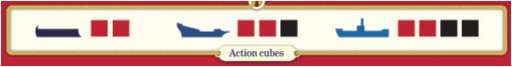 During the Sailing Ship era you take two merchant cubes from your available stock box and one free action cube from the pool and place them in your 'Action cubes' section.