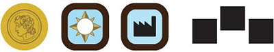 Each city space will have symbols indicating a benefit which you gain as soon as you place your disc in the space. These are: