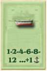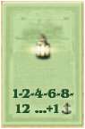 You gain points based on the number of lifebuoys in your fleet, according to the table on the card. (For example, 6 life- buoys are worth 12 points. Each lifebuoy above 6 is worth one extra point).