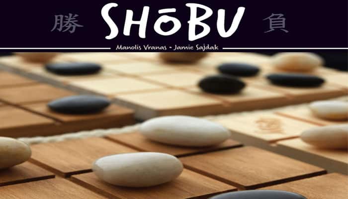 Arrange the game components as shown, with players sitting opposite one another. In SHOBU, there are four boards of active game play, with four stones of each color per board, arranged as shown.