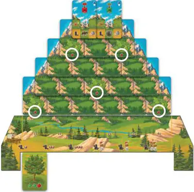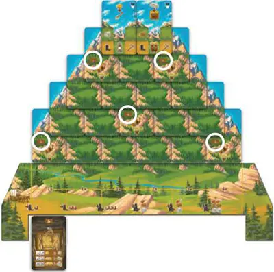 Note: The 15 basic mountain cards are shuffled and placed in all of the remaining spaces. Only one of them will be face-up. See the setup example.