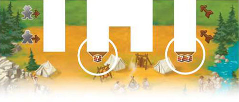 If the cabin tile you took from the market board was not the rightmost tile of the four, remove the rightmost cabin and place it in a discard pile. This space is marked in red.
