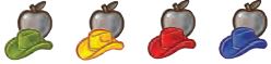 the top-right corner - an apple with a hat signifies a card that will go into a player deck (as described in point 4 below), with all other cards becoming a part of the mountain, as explained below.Cards marked with a red apple