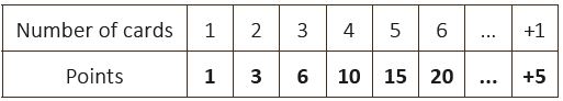 in their upper right corners.Gain points for these cards according to the chart below (which is also printed on your player board):