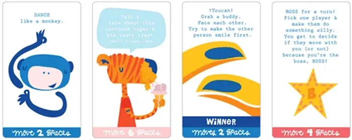 Youngest player goes first. When it's your turn, choose one card from the pile and do what it says! With gusto & enthusiasm! If you complete the card & do a good job, then...