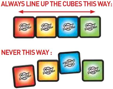 Briefly press the blue cube on the Game Menu to start. Then quickly shuffle the cubes and line them up. The cubes change colors depending on which position they're in.