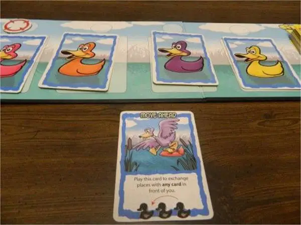 Move Ahead: You can swap one of your ducks with the duck immediately in front of it. If your duck is the first duck in line, this card can't be used.