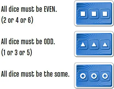 All players continue to roll and re-roll their dice until a player has matched the sequence shown.