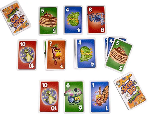 Whenever you make a play on a building pile, the card you play must be the next higher number up from the card on the top of that pile. For example, if the top card is a 3, you can play a 4 on top of it. You can also play a wild "?" card to represent #4.