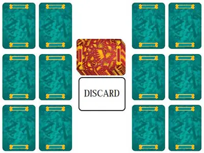 Players will discard cards onto a face up pile next to the draw pile. Look at your cards but keep them secret from opponents.