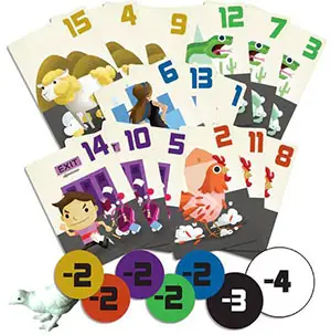 Place the Sluffer piece and the 27 colored tokens in the middle of the table. Depending upon number of players use the following cards: