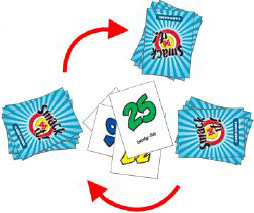 When a Challenge! card is played, all players flip ONE card, in turn, and ace it on the central pile. The player with the highest-numbered card wins the pile and ends the challenge round.