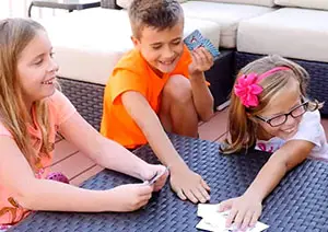Play continues clockwise with each player, in turn, QUICKLY flipping a single top card until a Challenge! or Smack it! card is placed on top of the central pile.